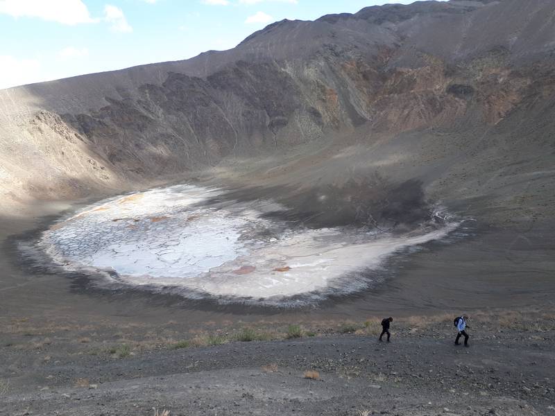 بد نیست بدانید قطر این دهانه آتشفشانی ۱۱۵۰ متر، ارتفاع لبه شرقی دهانه ۲۲۷۰ متر و ارتفاع لبه غربی دهانه ۲۳۳۵ متر است. گفتنی است که نمک موجود در ته این کراتر از کیفیت و مرغوبیت بالای برخوردار است.