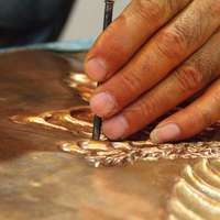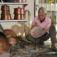 شکل دادن ورقههای مس برای ساختن ظروف با کمک چکش مسگری
