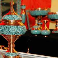 هنر تزیین سطح ظروف و زیور آلات با چیدمان تکههای ریز سنگ فیروزه