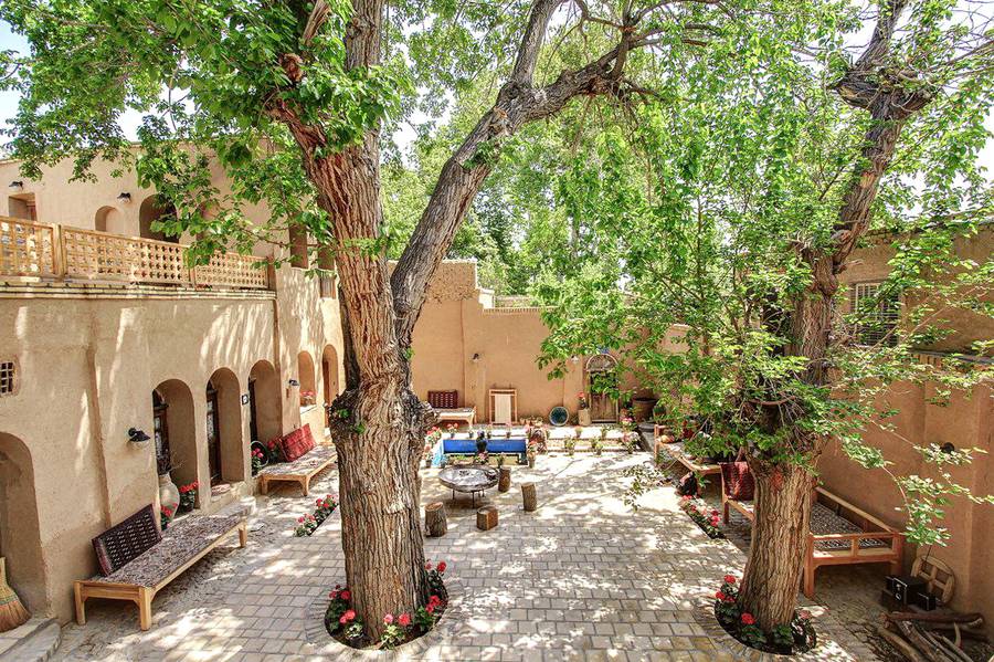 در میان حیاط یک درخت تنومند توت با عمری حدود ۱۲۰ سال قرار دارد. زیر این درخت حوض آب کوچکی قرار گرفته و با آب قناتی که از داخل مسجد جامع عبور میکند و با گذر از چند خانه به این خانه میرسد، لبریز میشود و از خانه عبور میکند و در آخر از آن خارج میشود.